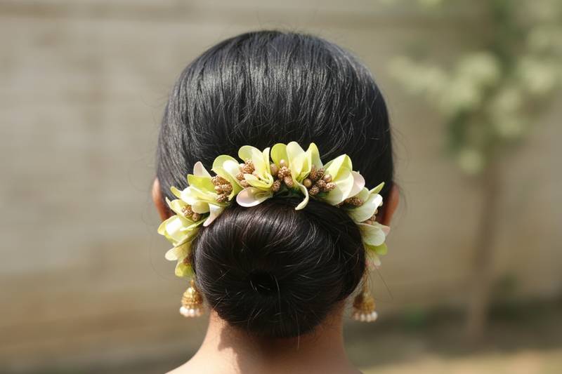 • Product Id : 4715616 • Package Details : 1 Gajra • Type : Hair Accessories • Jewellery Work : Plain • Color : Green • Plating : Yellow Gold • Base Material : Paper Payments [+]
