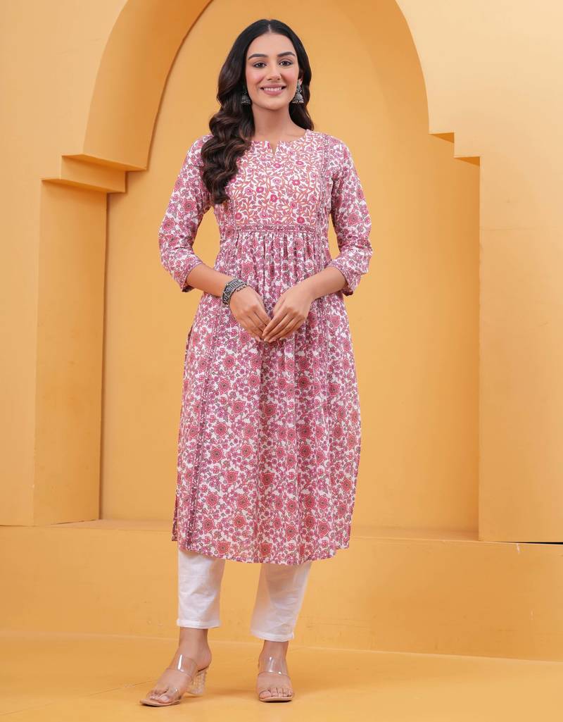 • Product Id : 4690405 • Package Details : 1 Kurta • Type : Ethnic Kurtis • Occasion : Casual • Work : Printed • Type : Floral Print • Look : Designer • Sleeve : Quarter Sleeve • Neck Style : Round Neck • Color : Pink • Fabric : Pure Cotton • Stitching : Stitched • Length : 44.0 • Side Slit : Yes Payments [+]