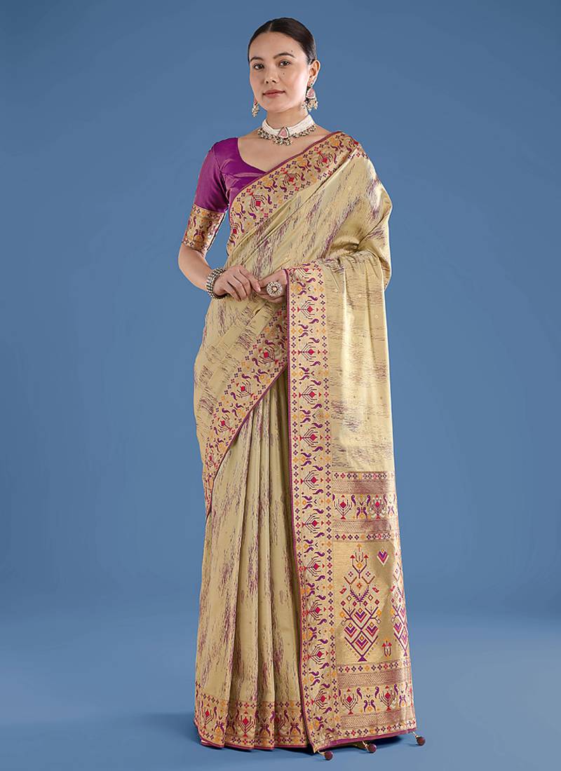 Beige Color Faux Banarasi Tissue Silk Paithani Woven Saree