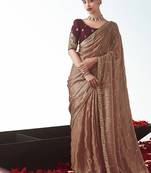Brown Embroidered Cut Work Fancy Fabric Ceremonial Designer Saree