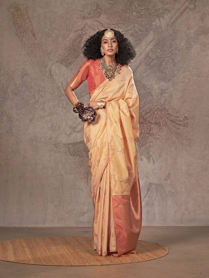 • Saree : Color- Cream / Fabric- Silk • Blouse : Color- Peach / Fabric- Silk Saree Details