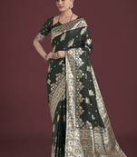 Dark Green Zari Woven Banarasi Satin Silk Saree