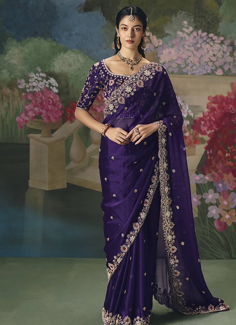 • Border : Embroidered Border • Color : Purple • Fabric Of : Fancy Fabric • Color : Purple Blouse Details