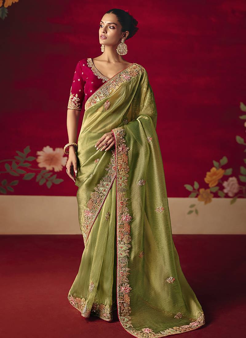 Green Fancy Fabric Embroidered Thread Work Classic Saree