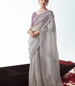 Grey Embroidered Cut Work Fancy Fabric Ceremonial Designer Saree
