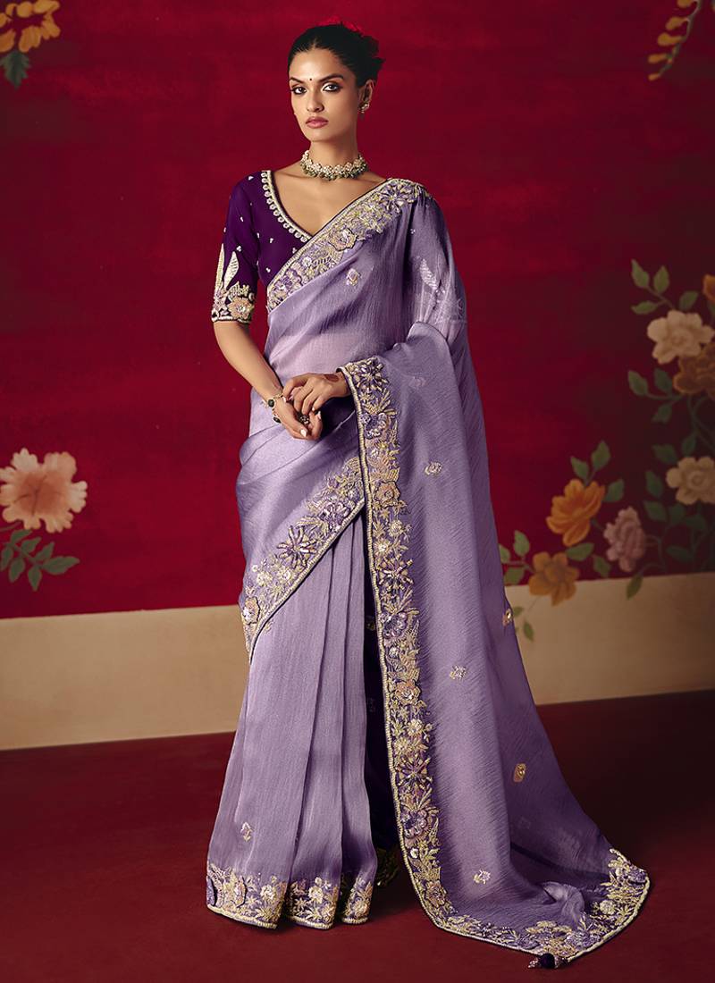 Lavender Fancy Fabric Embroidered Thread Work Classic Saree