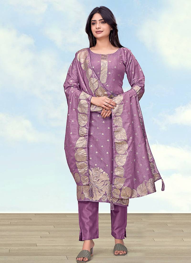 • Product Id : 4755446 • Package Details : 1 Top / 1 Bottom / 1 Dupatta • Type : Kurta Sets • Type : Zari Work • Look : Designer • Sleeve : Quarter Sleeve • Neck Style : Round Neck • Color : Lavender • Fabric : Silk Blend • Work : Abstract Print • Stitching : Stitched General - Color and Texture may have slight variation. This happens because of photography.