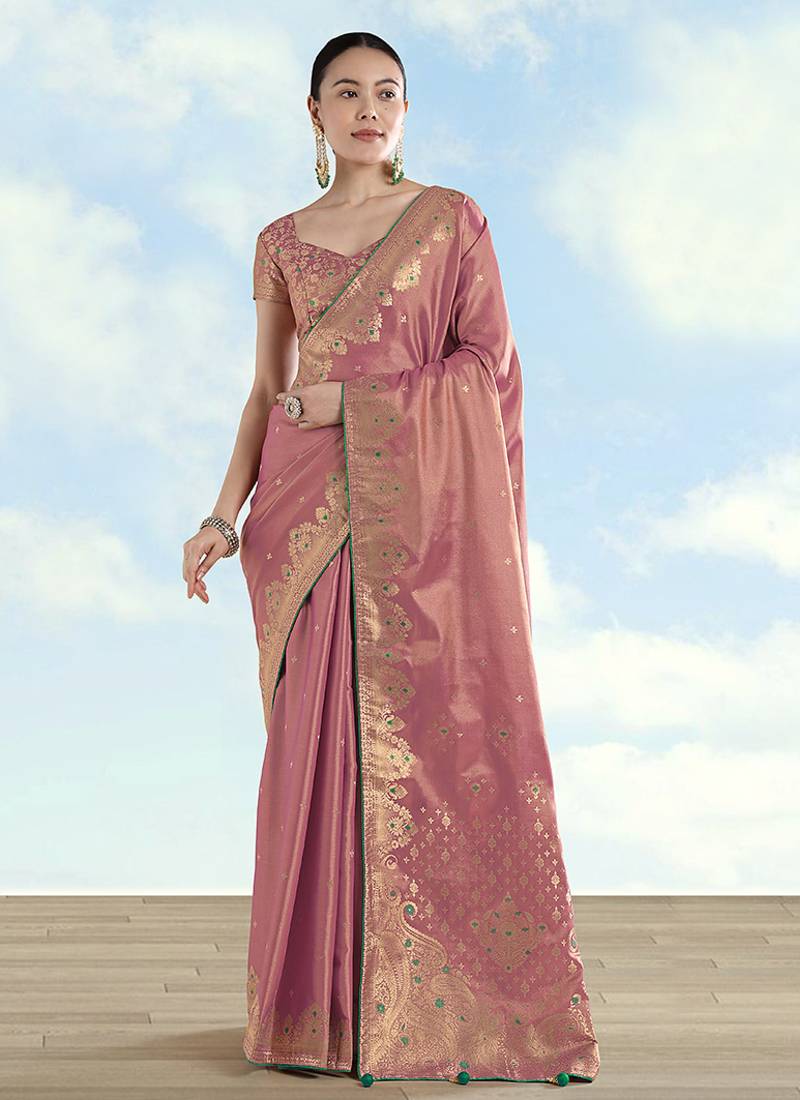 Light Pink Color Paisley Zari Woven Faux Banarasi Tissue Silk Saree