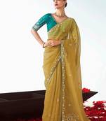 Olive Embroidered Cut Work Fancy Fabric Ceremonial Designer Saree