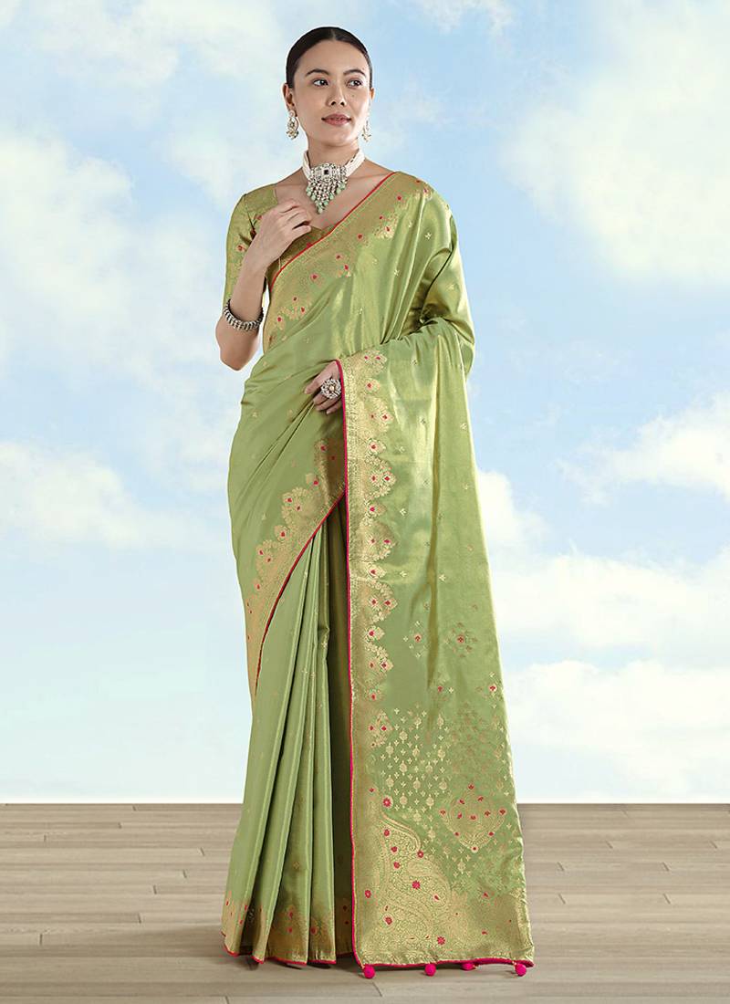 Parrot Green Color Paisley Zari Woven Faux Banarasi Tissue Silksaree