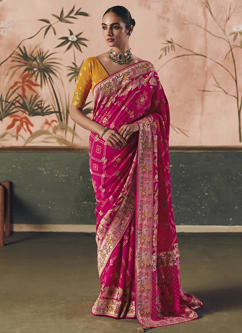 Rani Pink Bandhej Weaving Work Faux Khaddi Georgette Saree