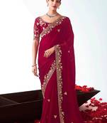 Rani Pink Embroidered Cut Work Fancy Fabric Ceremonial Designer Saree
