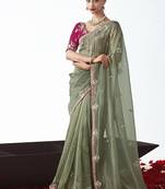 Sage Green Embroidered Cut Work Fancy Fabric Ceremonial Designer Saree
