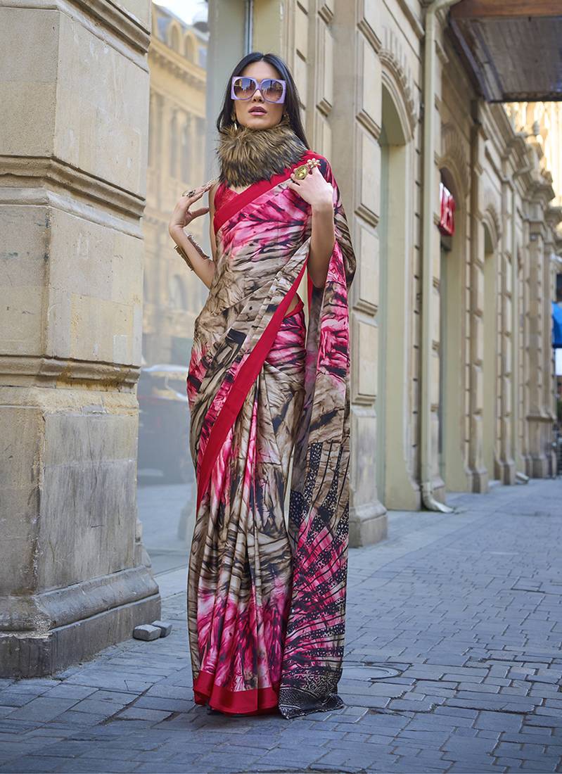 If you find the product for less we'll match it! Know MoreVogue and trend could be at the peak of your magnificence the moment you attire this multi colour satin silk casual saree. This attire is showing some really mesmerizing and innovative patterns print work. Comes with matching blouse. (Slight variation in color, fabric & work is possible. Model images are only representative.)