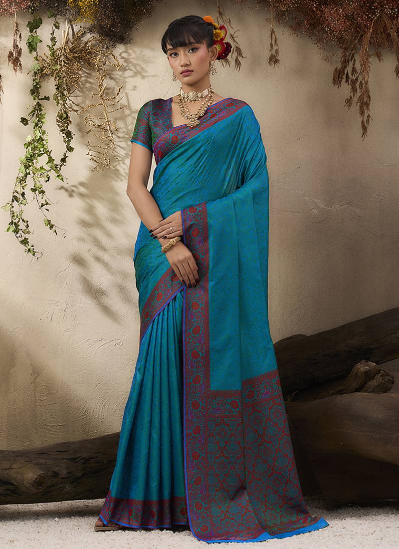 • Border : Designer Border • Fabric Of : Art Silk • Color : Teal • Color : Teal Blouse Details