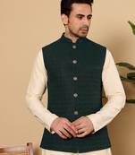 Elevate your ethnic ensemble with this classic Nehru Jacket. Perfectly tailored for a refined fit, it adds a royal touch to any kurta or shirt. Whether it's a festive celebration or a formal event, this versatile layer brings traditional charm and modern elegance together.