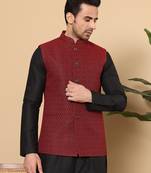 Elevate your ethnic ensemble with this classic Nehru Jacket. Perfectly tailored for a refined fit, it adds a royal touch to any kurta or shirt. Whether it's a festive celebration or a formal event, this versatile layer brings traditional charm and modern elegance together.