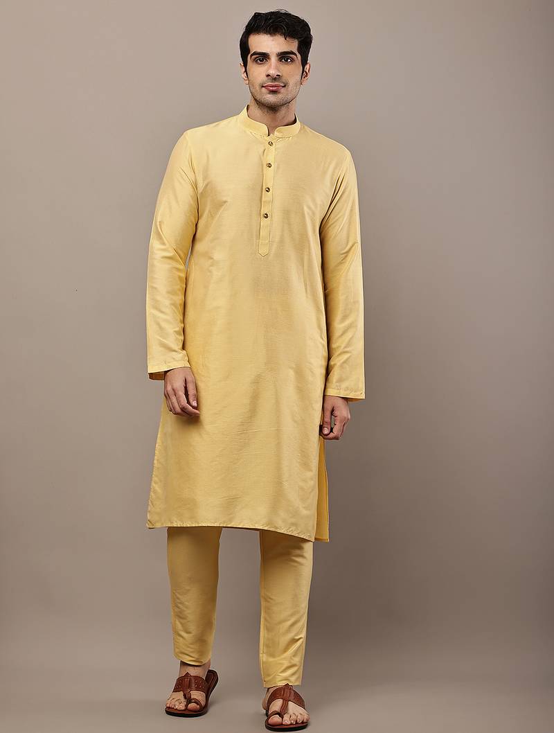 Men's Yellow Straight Viscose Silk Kurta