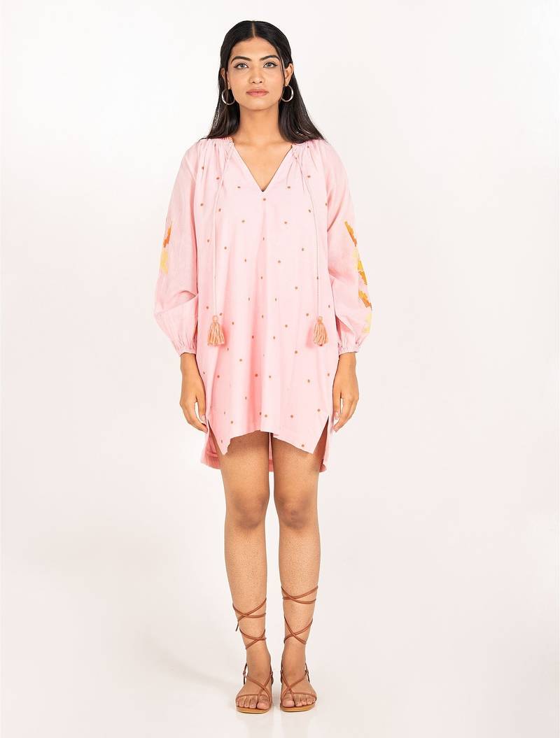 Phuket Dress Light Pink Embroidered Pure Cotton Mini Dress