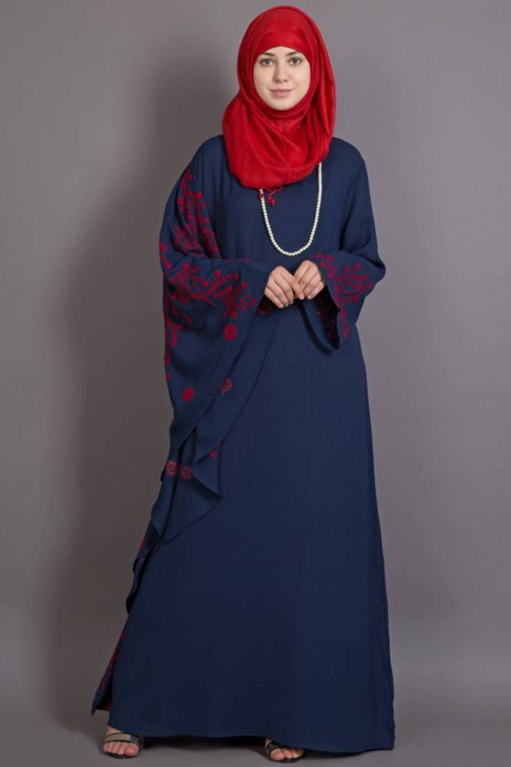 Navy Blue Poly Crepe Embroidered Party Islamic Abaya