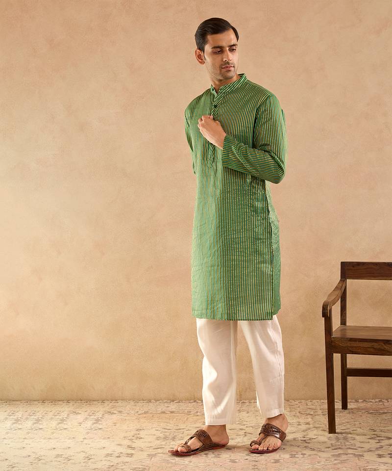 Green Woven Chanderi Kurta Set