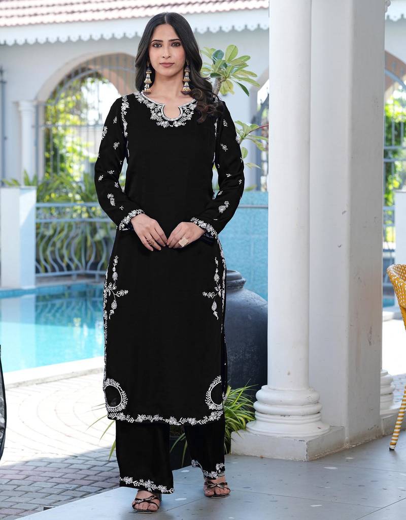 • Product Id : 4715491 • Package Details : 1 Kurta/1 Bottom • Type : Kurta Sets • Fabric : Satin • Work : Embroidered • Type : Resham Embroidery • Look : Designer • Sleeve : Full Sleeve • Neck Style : Keyhole Neck Kameez • Color : Black • Stitching : Stitched • Length : 46.0 Payments [+]