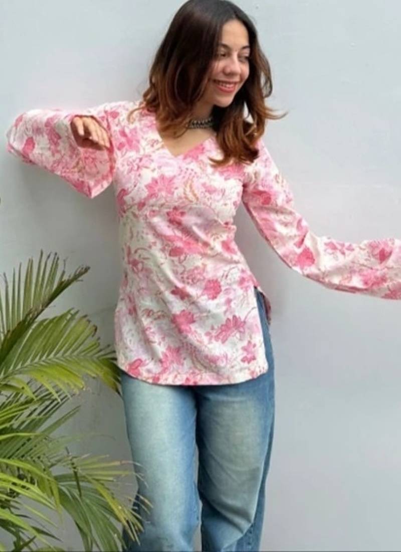 • Product Id : 4755096 • Package Details : 1 Pink Top • Type : Ethnic Kurtis • Occasion : Party Wear • Fabric : Rayon • Work : Printed • Type : Floral Print • Look : Designer • Sleeve : Full Sleeve • Neck Style : V Neck • Color : Baby Pink • Stitching : Stitched General - Color and Texture may have slight variation. This happens because of photography.