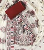 Featuring beautiful Print, this Maroon & White coloured unstitched salwar suit from salwar studio will surely catch your fancy at a single glance.The matching printed bottom & dupatta enhance the beauty of the kameez. Get it stitched as per the latest fashion and flaunt a new look.This Dress can be customised till 42 inches & bottom can be customised for salwar/chudidar/pant style.Kurta Length : 2.50 mtr; Salwar Length : 2.00 mtr; Dupatta Length : 2.25 mtr.Wash Care : Regular hand wash.Ocassion : Casual Wear.In the Box : 1 Top, 1 Bottom & 1 Dupatta;Top Fabric : Cotton ; Bottom Fabric : Cotton ; Dupatta Fabric : Cotton ; Top Color : Maroon & White ; Bottom Color : Maroon ; Dupatta Color :Maroon & White ; Product colour may slightly vary due to photographic lighting sources or your monitor settings.
