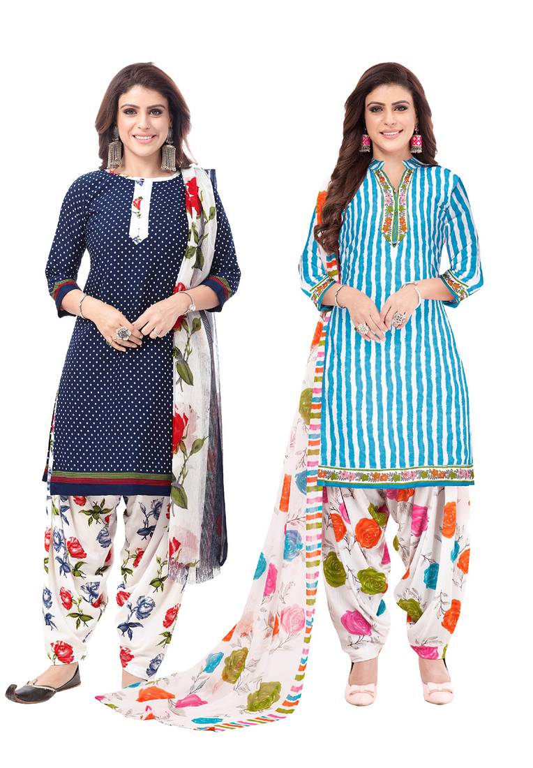 Synthetic Printed Unstitched Dress Material Combo
