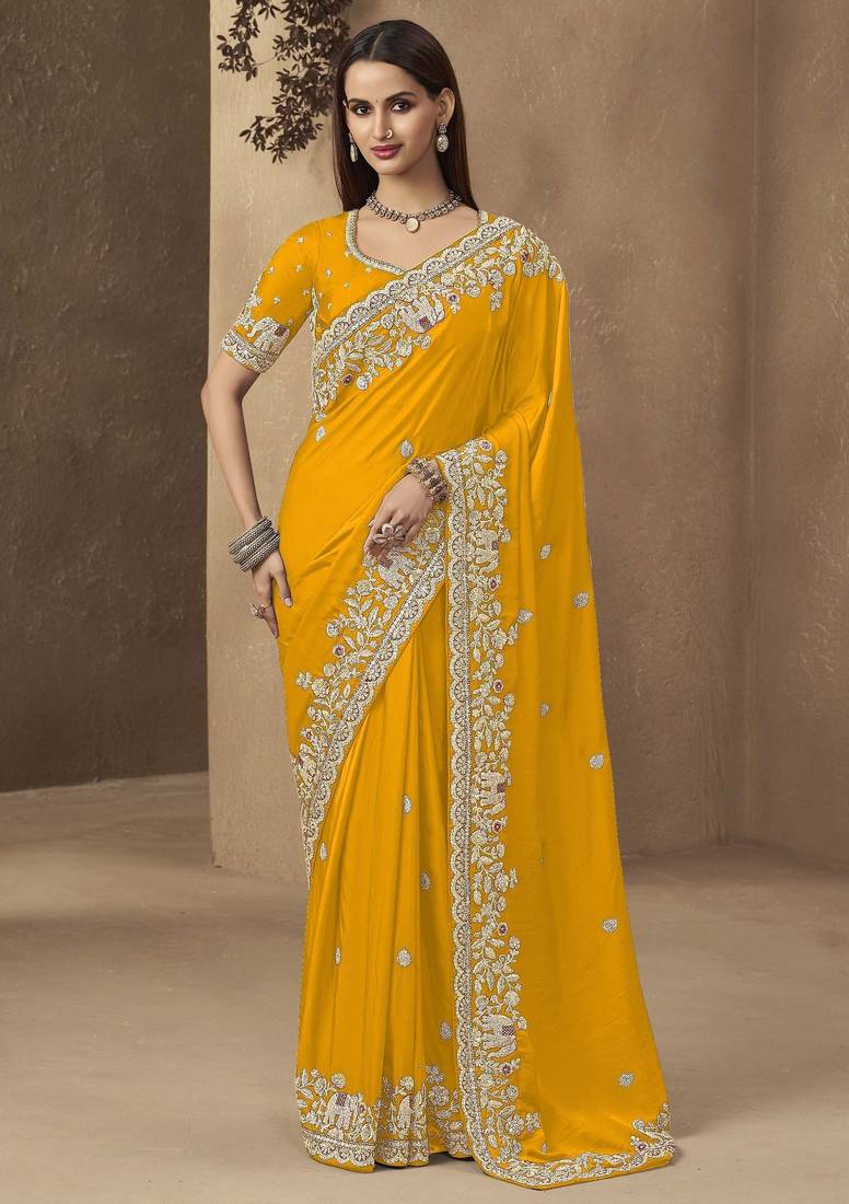 • Saree : Color- Yellow / Fabric- Satin • Blouse : Color- Yellow / Fabric- Satin Saree Details