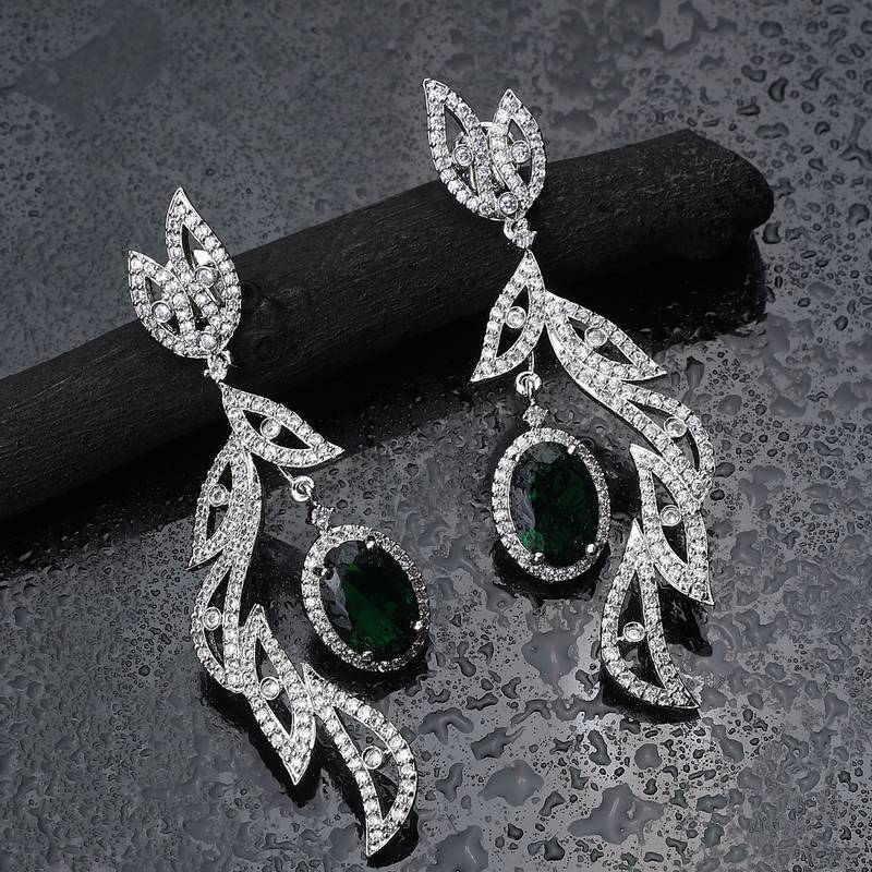 • Product Id : 4684430 • Package Details : 1 Earrings • Type : Earrings • Look : Contemporary • Jewellery Work : American Diamonds • Color : Green • Plating : Rhodium • Base Material : Brass • Piercing : Yes • Pearl Type : Na • Pearl Shape : Na Payments [+]