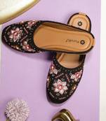 Pairs4u Women's Black Canvas Embroidered Juttis With Pvc Sole, Comfortable Slip On Ethnic Footwear For Women & Girls