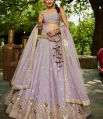 Mauve Chinnon Sequin Embroidery Semi Stitched Lehenga Choli With Dupatta
