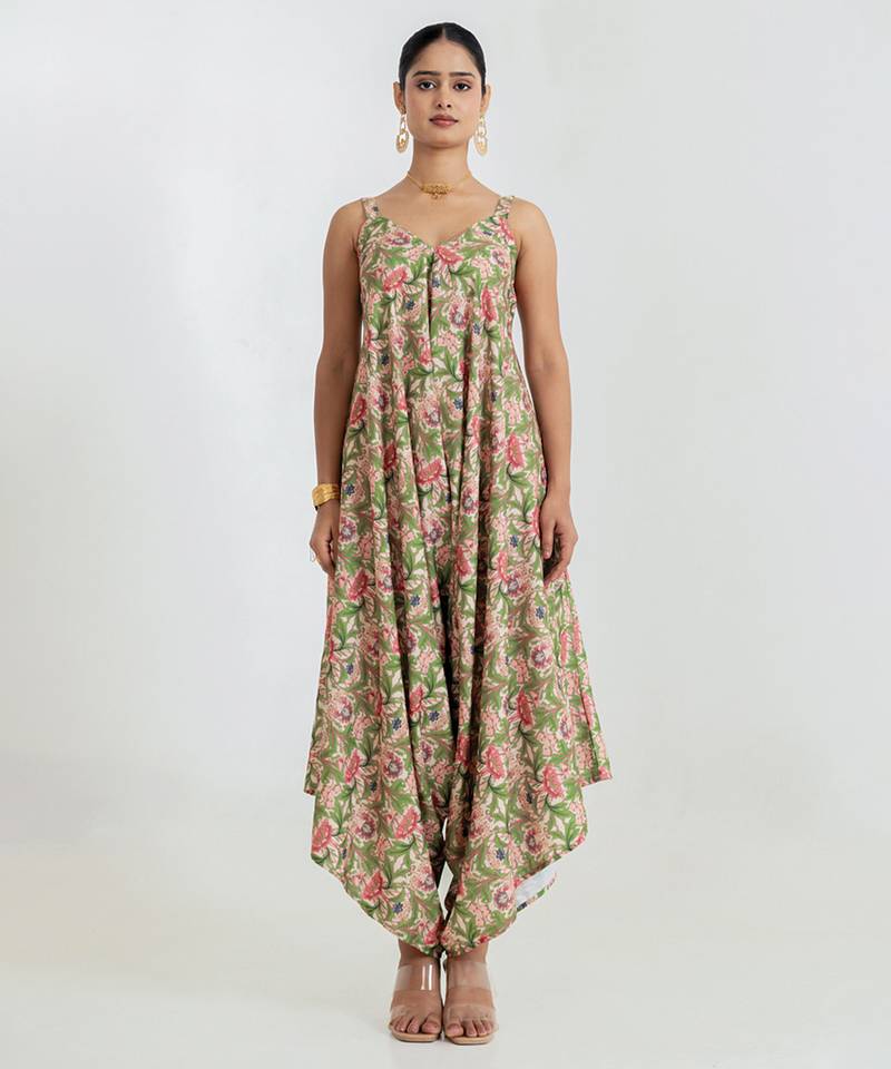 Components: 1 Jumpsuit• Product Id : 4749527 • Package Details : 1 Jumpsuit • Type : Jumpsuits • Occasion : Casual • Fabric : Rayon • Work : Printed • Type : Floral Print • Look : Fashion • Sleeve : Sleeveless • Color : Green • Stitching : Stitched • Length : 50.0 General - Color and Texture may have slight variation. This happens because of photography.