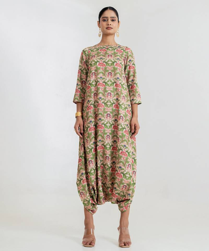 Components: 1 Jumpsuit• Product Id : 4749531 • Package Details : 1 Jumpsuit • Type : Jumpsuits • Occasion : Casual • Fabric : Rayon • Work : Printed • Type : Floral Print • Look : Fashion • Sleeve : Quarter Sleeve • Color : Green • Stitching : Stitched • Length : 50.0 General - Color and Texture may have slight variation. This happens because of photography.