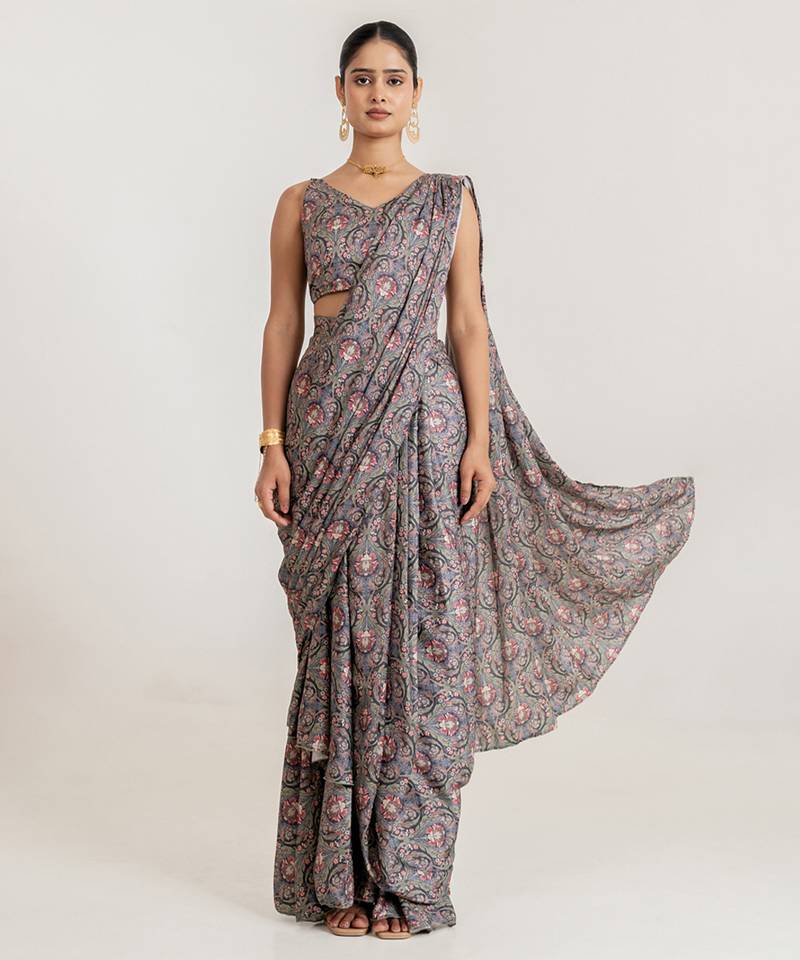 If you find the product for less we'll match it! Know MoreElegant And Contemporary, This Grey Printed Swiss Satin Saree Set Features A Sleek Finish With A Fluid Drape. The Refined Print Adds Depth And Character, Making It Ideal For Evening Wear And Celebrations. A Perfect Blend Of Modern Style And Timeless Sophistication For Your Wardrobe.