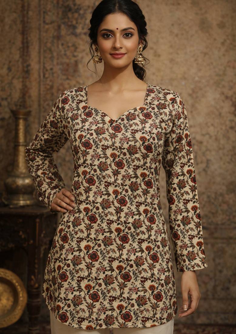 • Product Id : 4713572 • Package Details : 1 Top • Type : Short Kurtis • Region : India • Occasion : Casual • Work : Printed • Type : Floral Print • Look : Designer • Sleeve : Full Sleeve • Color : Cream • Stitching : Stitched • Fabric : Muslin • Neck Style : Stylised Neck • Length : 30.0 Stitching [+]