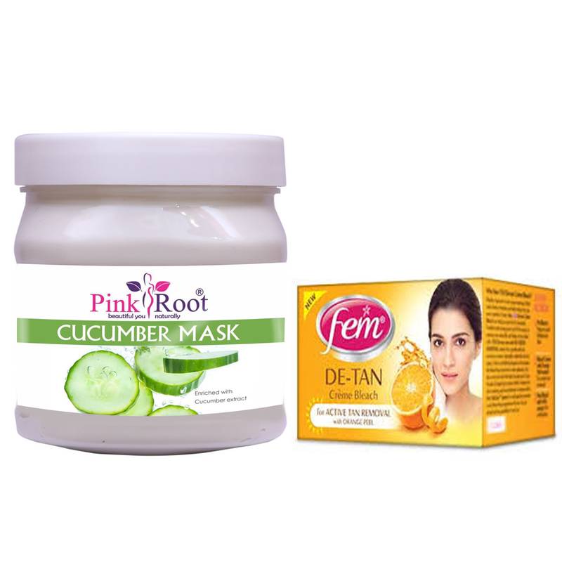 Pink Root Cucumber Mask Enriched with Cucumber extract with Fem De-Tan Creme Bleach 50gm