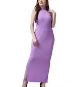 Popwings Women Bodycon Lavender Halter Neck Long Sheath Dress