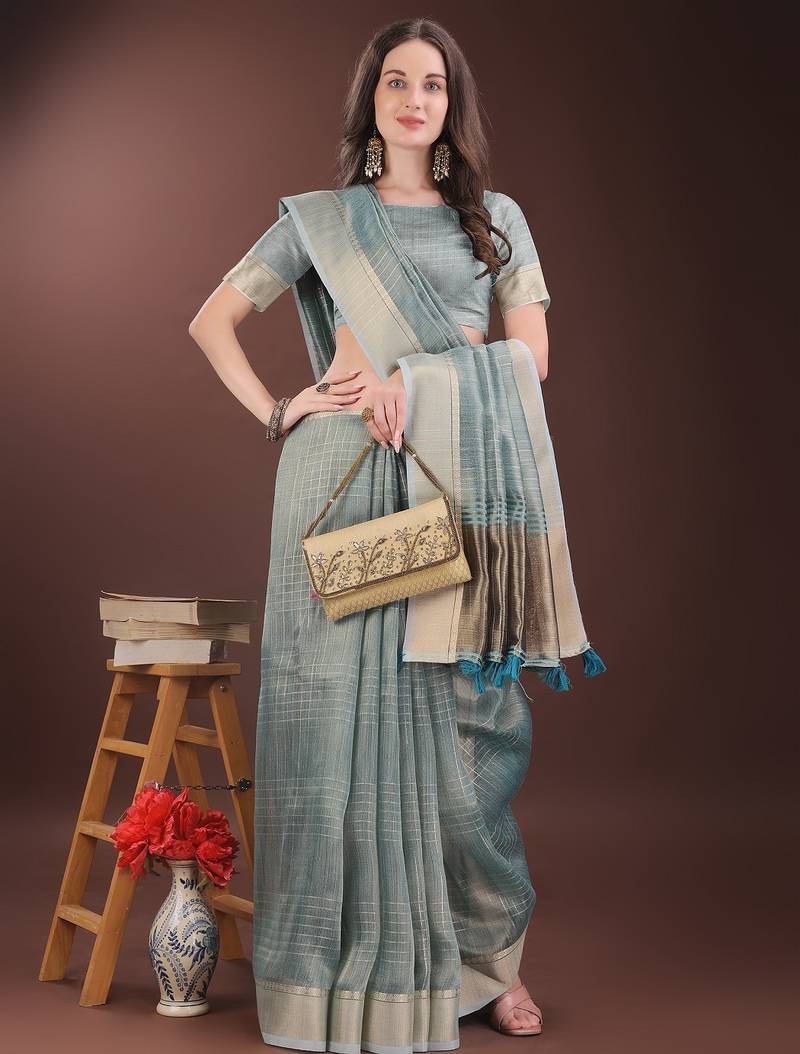 • Border : Contrast Border • Fabric Of : Organza • Color : Light Blue • Color : Light Blue Blouse Details