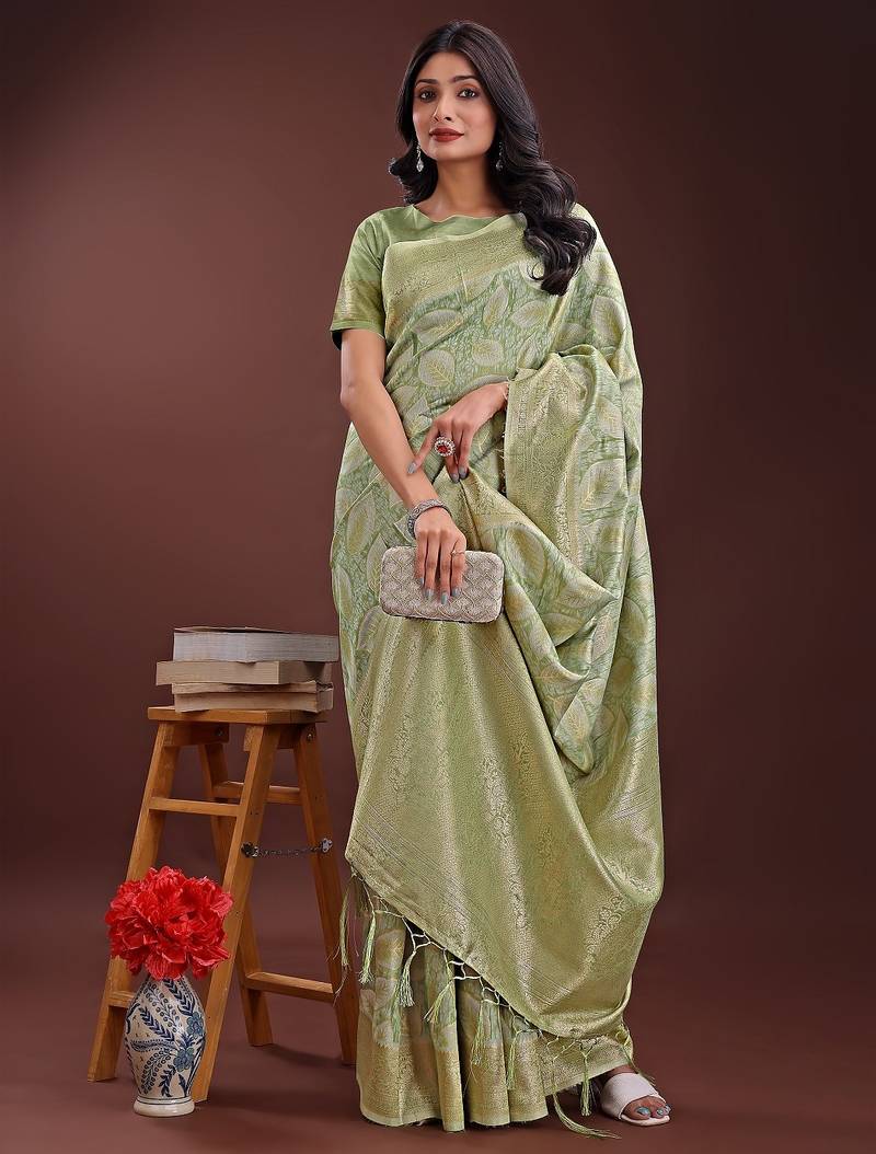 Light Green Color Woven Work Cotton Saree With Blouse