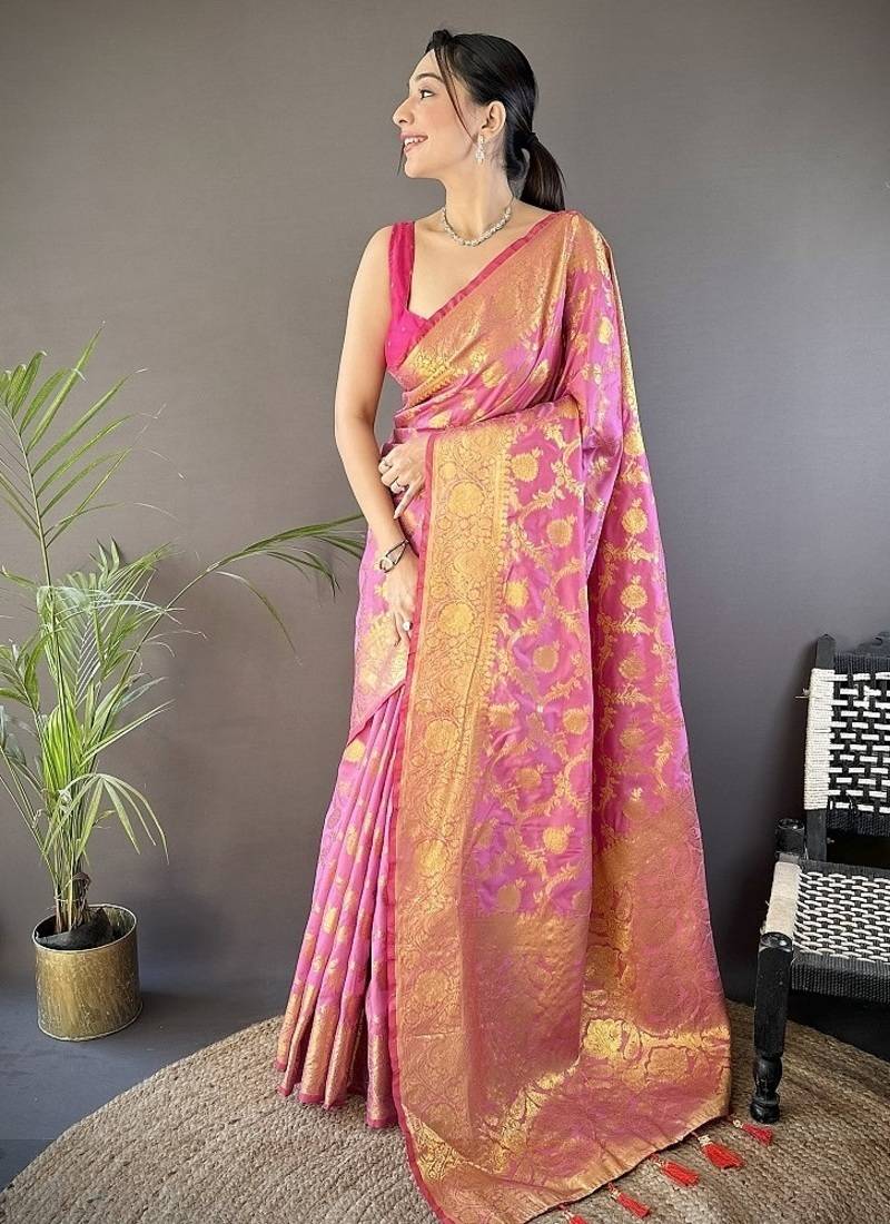 Light Pink Color Banarasi Soft Art Silk Zari Woven Saree