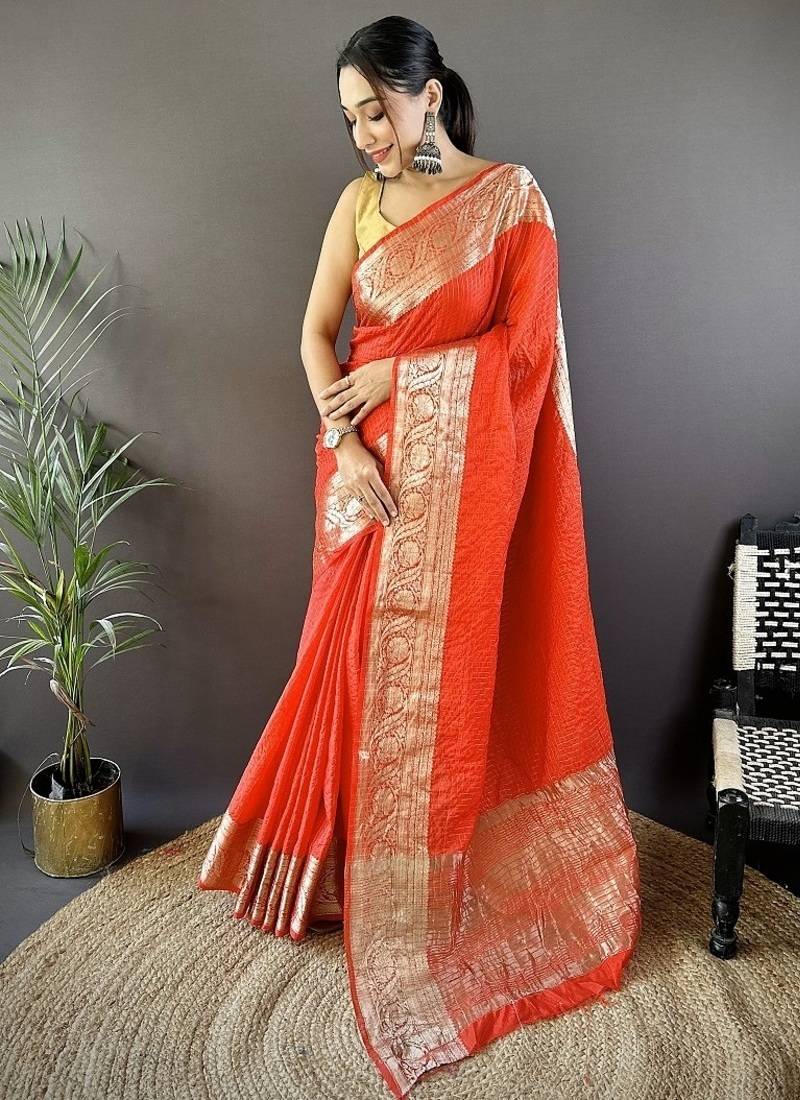 Orange Color Zari Weaving Work Nylon Viscose Saree