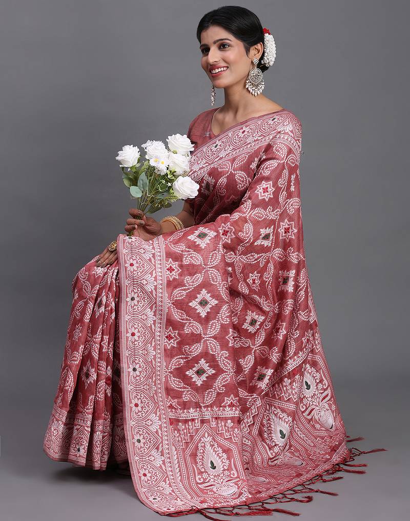 linen cotton weaving zari border work women's beautiful saree with blouse piece