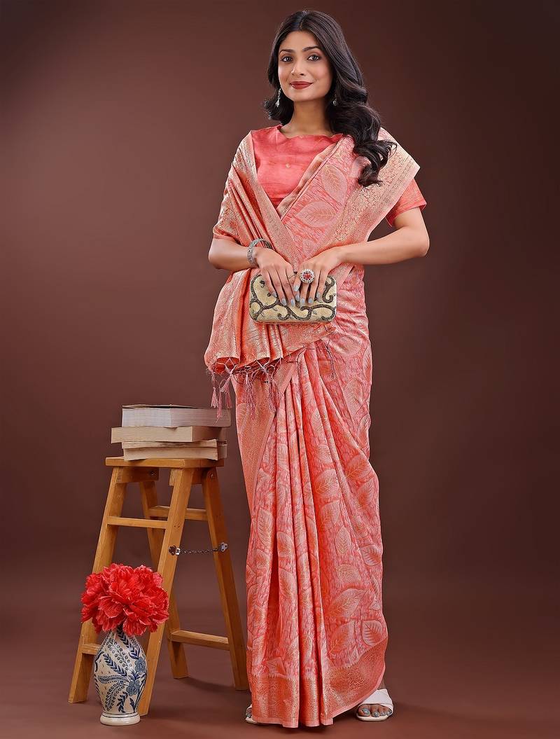 • Saree : Color- Peach / Fabric- Cotton • Blouse : Color- Peach / Fabric- Cotton Saree Details