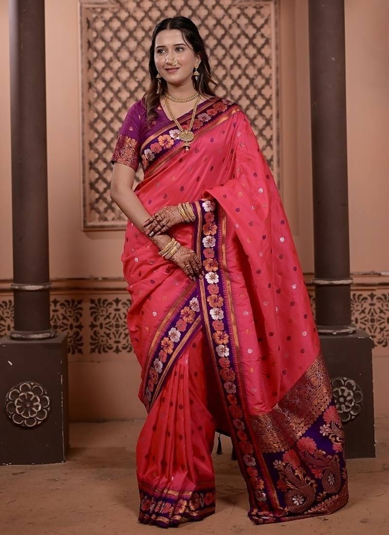Pink Color Colorfull Woven Border Zari Work Soft Silk Blend Saree