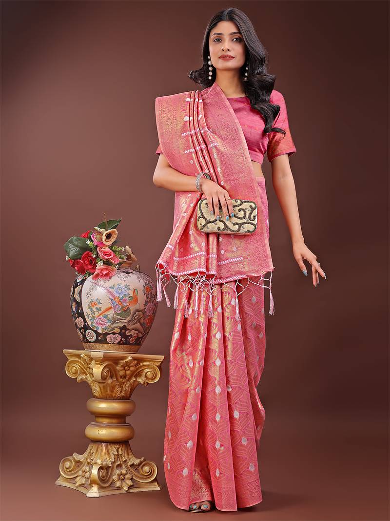 • Saree : Color- Pink / Fabric- Cotton • Blouse : Color- Pink / Fabric- Cotton Saree Details