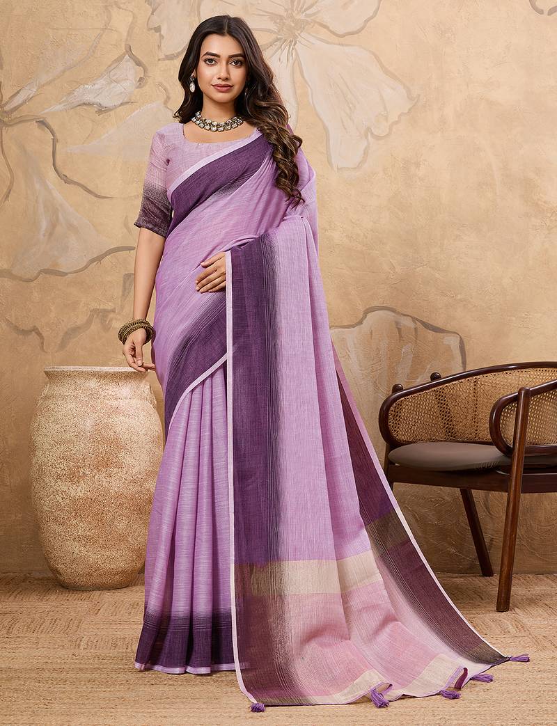 • Border : Contrast Border • Fabric Of : Linen • Color : Purple • Color : Purple Blouse Details