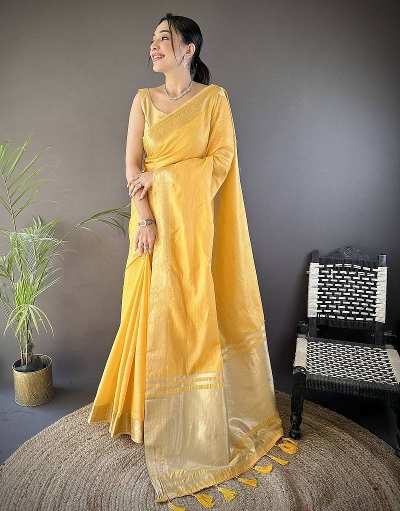 • Border : Contrast Border • Fabric Of : Cotton • Color : Yellow • Color : Yellow Blouse Details