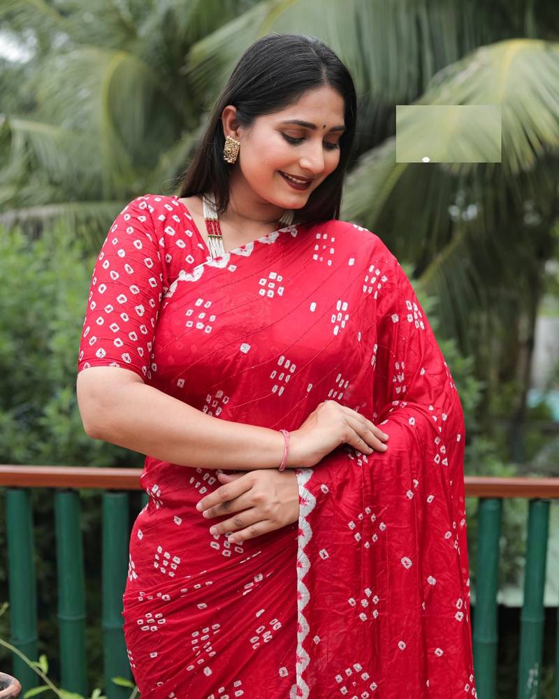 Red Bandhani Silk Saree
